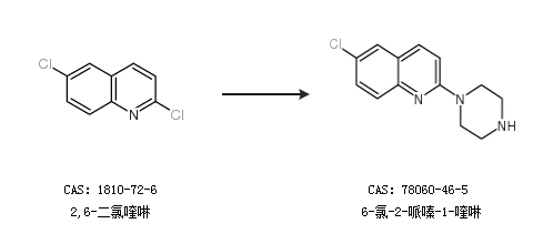 1.通过2,6-二氯喹啉合成6-氯-2-哌嗪-1-喹啉
