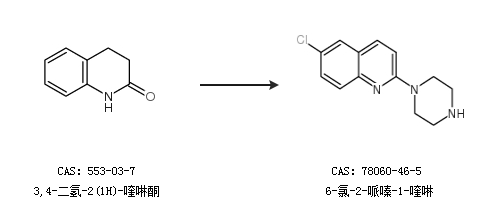 2.通过3,4-二氢-2(1H)-喹啉酮合成6-氯-2-哌嗪-1-喹啉