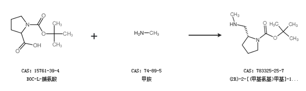 2.通过BOC-L-脯氨酸和甲胺合成(2R)-2-[(甲基氨基)甲基]-1-吡咯烷羧酸叔丁酯