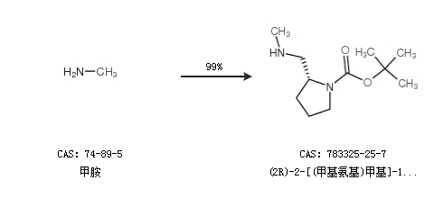 1.通过甲胺合成(2R)-2-[(甲基氨基)甲基]-1-吡咯烷羧酸叔丁酯,收率约99%;