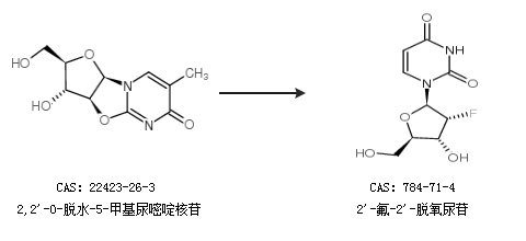 1.通过2,2''-O-脱水-5-甲基尿嘧啶核苷合成2''-氟-2''-脱氧尿苷