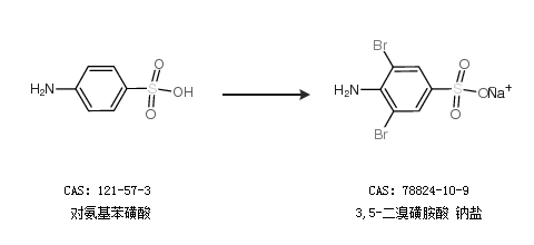 1.通过对氨基苯磺酸合成3,5-二溴磺胺酸 钠盐