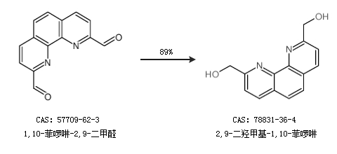 1.通过1,10-菲啰啉-2,9-二甲醛合成2,9-二羟甲基-1,10-菲啰啉,收率约89%;