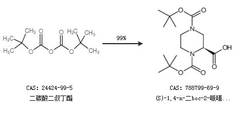 2.通过二碳酸二叔丁酯合成(S)-1,4-n-二boc-2-哌嗪-2-羧酸,收率约99%;
