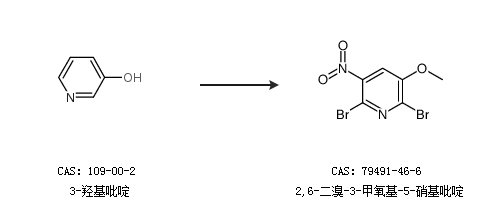 2.通过3-羟基吡啶合成2,6-二溴-3-甲氧基-5-硝基吡啶
