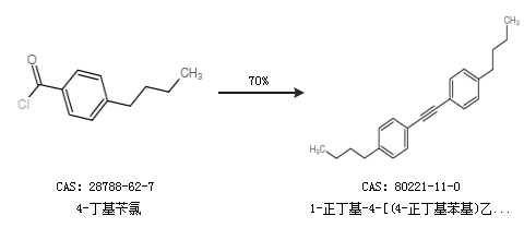 2.通过4-丁基苄氯合成1-正丁基-4-[(4-正丁基苯基)乙炔基]苯,收率约70%;