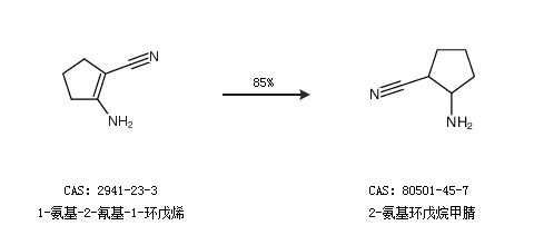 1.通过1-氨基-2-氰基-1-环戊烯合成2-氨基环戊烷甲腈,收率约85%;