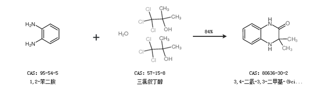 2.通过1,2-苯二胺和三氯叔丁醇合成3,4-二氢-3,3-二甲基-(9ci)-2(1h)-喹噁啉酮,收率约84%;