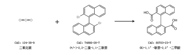 1.通过二氧化碳和(+/-)-2,2-二溴-1,1-二联萘合成(R)-1,1’-联萘-2,2’-二甲酸