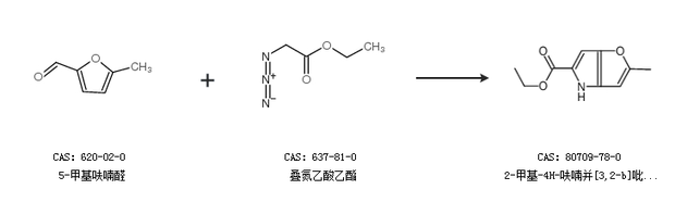 1.通过5-甲基呋喃醛和叠氮乙酸乙酯合成2-甲基-4H-呋喃并[3,2-b]吡咯-5-羧酸乙酯