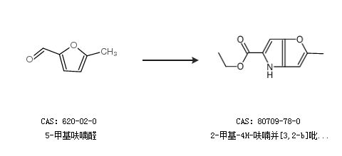2.通过5-甲基呋喃醛合成2-甲基-4H-呋喃并[3,2-b]吡咯-5-羧酸乙酯