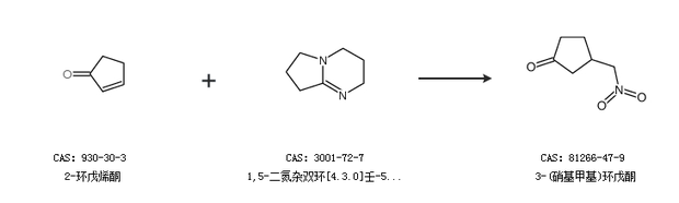1.通过2-环戊烯酮和1,5-二氮杂双环[4.3.0]壬-5-烯合成3-(硝基甲基)环戊酮