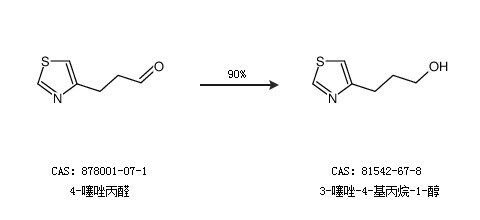 1.通过4-噻唑丙醛合成3-噻唑-4-基丙烷-1-醇,收率约90%;