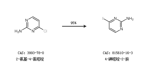 1.通过2-氨基-4-氯嘧啶合成4-碘嘧啶-2-胺,收率约95%;