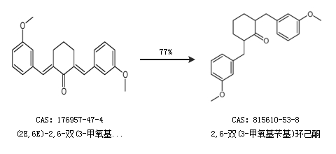 1.通过(2E,6E)-2,6-双(3-甲氧基亚苄基)环己酮合成2,6-双(3-甲氧基苄基)环己酮,收率约77%;