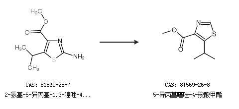 1.通过2-氨基-5-异丙基-1,3-噻唑-4-羧酸甲酯合成5-异丙基噻唑-4-羧酸甲酯