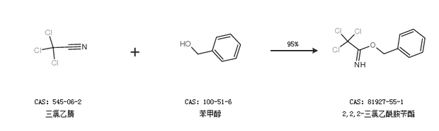 1.通过三氯乙腈和苯甲醇合成2,2,2-三氯乙酰胺苄酯,收率约95%;