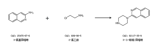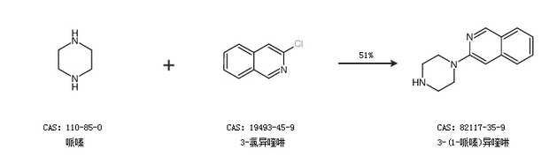 1.通过哌嗪和3-氯异喹啉合成3-(1-哌嗪)异喹啉,收率约51%;