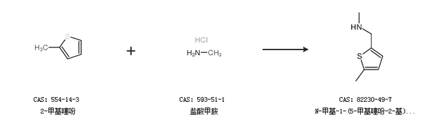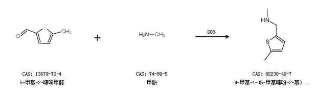 1.通过5-甲基-2-噻吩甲醛和甲胺合成N-甲基-1-(5-甲基噻吩-2-基)甲胺,收率约60%;