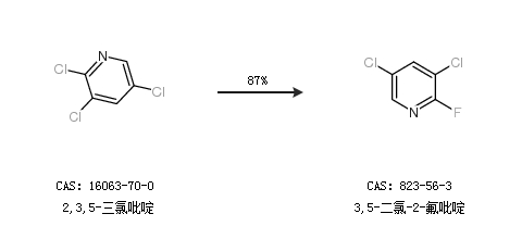 1.通过2,3,5-三氯吡啶合成3,5-二氯-2-氟吡啶,收率约87%;