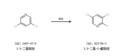2.通过3,5-二氯吡啶合成3,5-二氯-2-氟吡啶,收率约45%;