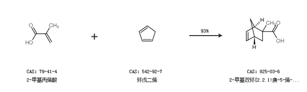 1.通过2-甲基丙烯酸和环戊二烯合成2-甲基双环[2.2.1!庚-5-烯-2-羧酸,收率约93%;