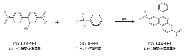 1.通过4,4’-二硝基-2-联苯胺和α,α,α-三氯甲苯合成3,8-二硝基-6-苯基菲啶,收率约72%;