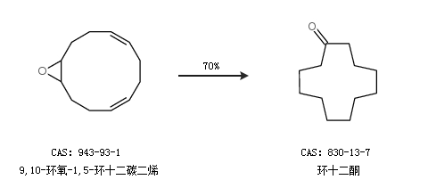 2.通过9,10-环氧-1,5-环十二碳二烯合成环十二酮,收率约70%;