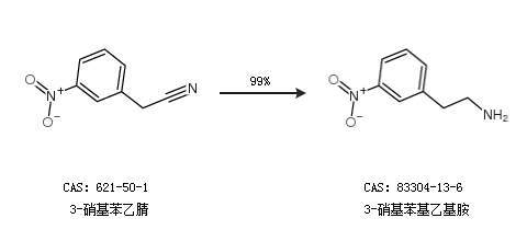 1.通过3-硝基苯乙腈合成3-硝基苯基乙基胺,收率约99%;