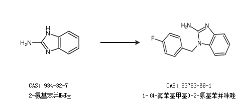 英文别名 1-(4-fluorobenzyl)-1H-benzimidazol-2-amine;1-(4-fluorobenzyl)-1H-benzo[d]imidazol-2-amine;1-(4-fluorophenylmethyl)-1H-benzimidazol-2-amine;EINECS 280-803-2;2-Amino-1-[(4-fluorophenyl)methyl]-1H-benzimidazole;1-(4-Fluorophenylmethyl)-2-aminobenzimidazole;