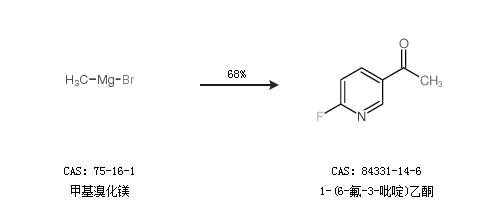 1.通过甲基溴化镁合成1-(6-氟-3-吡啶)乙酮,收率约68%;