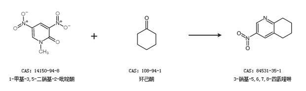 2.通过1-甲基-3,5-二硝基-2-吡啶酮和环己酮合成3-硝基-5,6,7,8-四氢喹啉