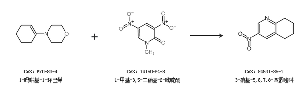 1.通过1-吗啉基-1-环己烯和1-甲基-3,5-二硝基-2-吡啶酮合成3-硝基-5,6,7,8-四氢喹啉