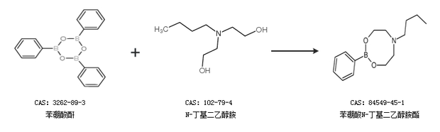1.通过苯硼酸酐和N-丁基二乙醇胺合成苯硼酸N-丁基二乙醇胺酯