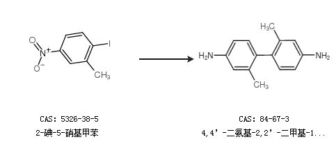1.通过2-碘-5-硝基甲苯合成4,4’-二氨基-2,2’-二甲基-1,1’-联苯