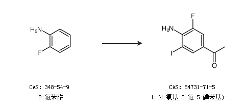 2.通过2-氟苯胺合成1-(4-氨基-3-氟-5-碘苯基)-1-乙酮