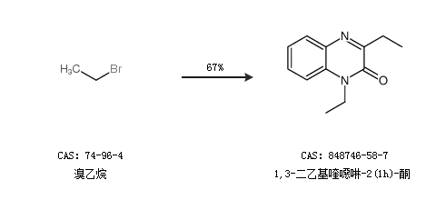 1.通过溴乙烷合成1,3-二乙基喹噁啉-2(1h)-酮,收率约67%;