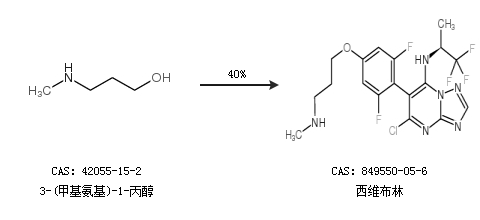 1.通过3-(甲基氨基)-1-丙醇合成西维布林,收率约40%;