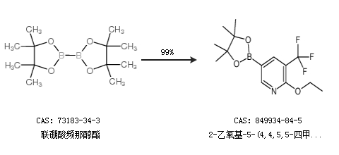 1.通过联硼酸频那醇酯合成2-乙氧基-5-(4,4,5,5-四甲基-1,3,2-二噁硼烷-2-基)-3-(三氟甲基)-吡啶,收率约99%;