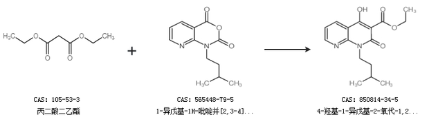 2.通过丙二酸二乙酯和1-异戊基-1H-吡啶并[2,3-d][1,3]噁嗪-2,4-二酮合成4-羟基-1-异戊基-2-氧代-1,2-二氢-1,8-萘啶-3-羧酸乙酯