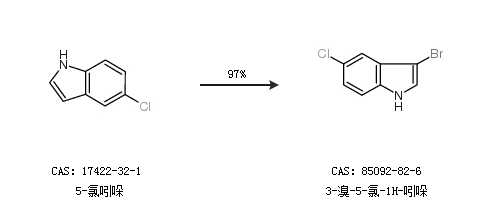1.通过5-氯吲哚合成3-溴-5-氯-1H-吲哚,收率约97%;