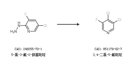 2.通过5-氯-3-氟-2-肼基吡啶合成3,4-二氯-5-氟吡啶