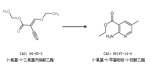 1.通过2-氰基-3-乙氧基丙烯酸乙酯合成2-氨基-5-甲基吡啶-3-羧酸乙酯