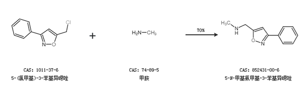1.通过5-(氯甲基)-3-苯基异噁唑和甲胺合成5-N-甲基氨甲基-3-苯基异噁唑,收率约70%;