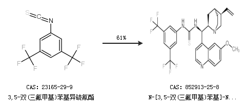 1.通过3,5-双(三氟甲基)苯基异硫氰酯合成N-[3,5-双(三氟甲基)苯基]-N′-[(9R)-6′-甲氧基-9-金鸡宁]硫脲,收率约61%;