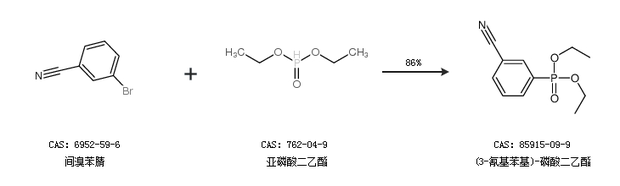1.通过间溴苯腈和亚磷酸二乙酯合成(3-氰基苯基)-磷酸二乙酯,收率约86%;
