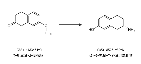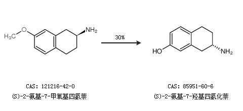 2.通过(S)-2-氨基-7-甲氧基四氢萘合成(S)-2-氨基-7-羟基四氢化萘,收率约30%;