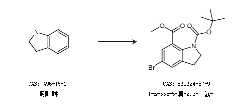 1.通过吲哚啉合成1-n-boc-5-溴-2,3-二氢-1H-吲哚-7-羧酸甲酯