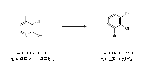 1.通过3-氯-4-羟基-2(1H)-羟基吡啶合成2,4-二溴-3-氯吡啶