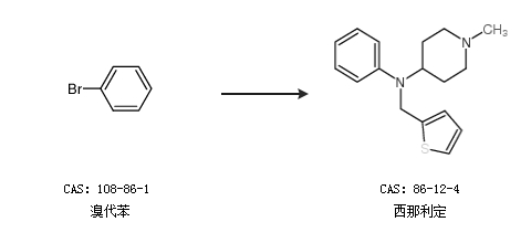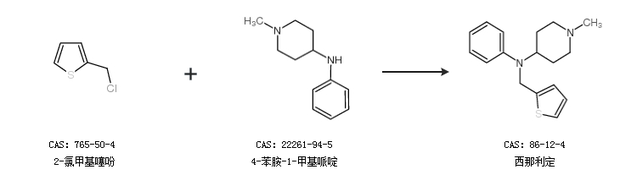 2.通过2-氯甲基噻吩和4-苯胺-1-甲基哌啶合成西那利定